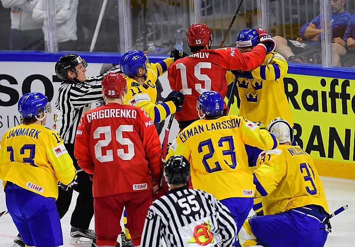 Уже на 30-й секунде игры камера на шлеме арбитра выхватила перекошенное лицо Рикарда Ракелля крупным планом. Еще через полторы минуты Адам Ларссон без какой-либо необходимости умышленно вмазал по лицу нашему игроку клюшкой. Шведы, общепризнанные «мягкие кексики» мирового хоккея, вышли на самый важный матч группы, объевшись озверина – и добились своего.