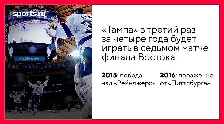 Сегодня ночью «Тампа» и «Вашингтон» сыграют 7-й матч финальной серии Восточной конференции НХЛ. Победитель отправится в финал Кубка Стэнли биться с «Вегасом», проигравший присоединится к уже вылетевшим неудачникам.