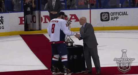 «Вашингтон» выиграл Приз принца Уэльского – за победу в Восточной конференции, и Овечкин не побоялся хоккейных примет, обняв и его.