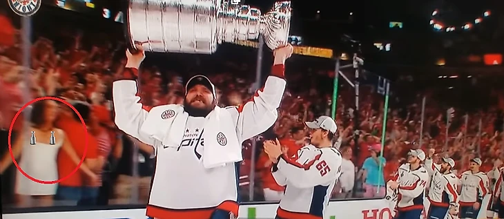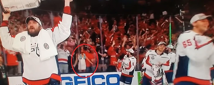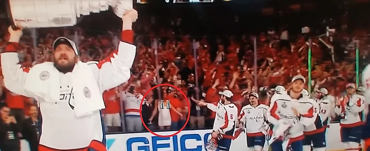 Во время проката с кубком одна из фанаток оголила грудь. Радовалась за себя, за Сашку и за «Кэпиталс». Эпичное выражение лица Александра на фоне обнаженной женской груди. Что может быть лучше?