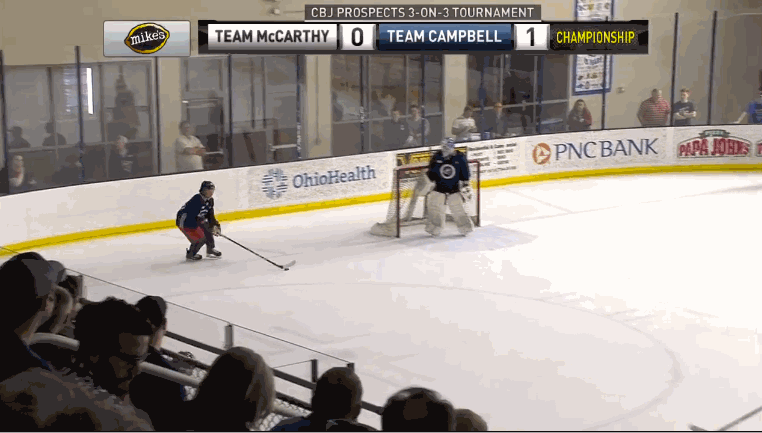 На двусторонке их с Ховановым ставили в тройку к Джексону Кейтсу, недрафтованому американцу из USHL, и они, три игровичка, нашли какую-то химию. Для кого-то Соколов и вовсе был лучшим на льду — создавал моменты каждую смену, для себя и для партнеров. Был чуть ли не единственным игроком в лагере, который постоянно генерировал опасности на чужой половине. Показал, что умеет бросать с неудобной руки — и даже чуть не забил таким броском. Забил буллит — после этого все поняли, что у него чуть ли не лучшие руки всего лагеря. В начале этого эпизода у Соколова (№74) опасный момент.
