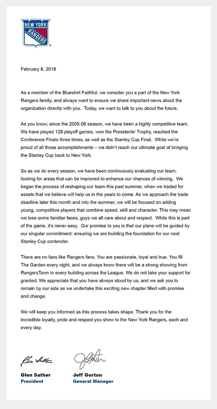 В принципе всё, здесь оригинал статьи https://www.blueshirtbanter.com/2018/8/15/17609344/a-timeline-of-the-new-york-rangers-rebuild