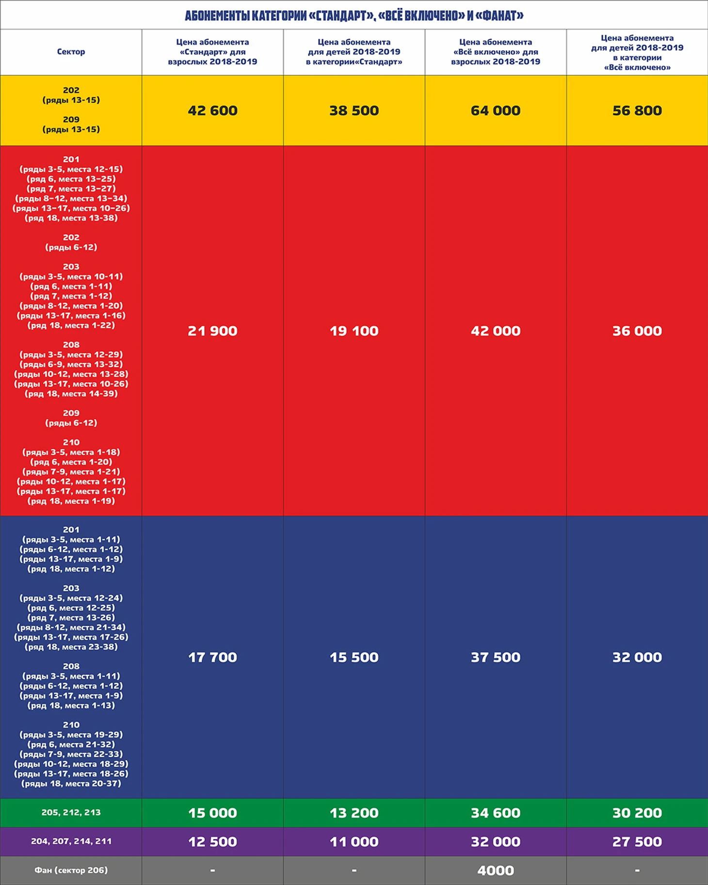 Цены на абонементы в сезоне 2018/19 года существенно снижены по сравнению с прошлым сезоном: