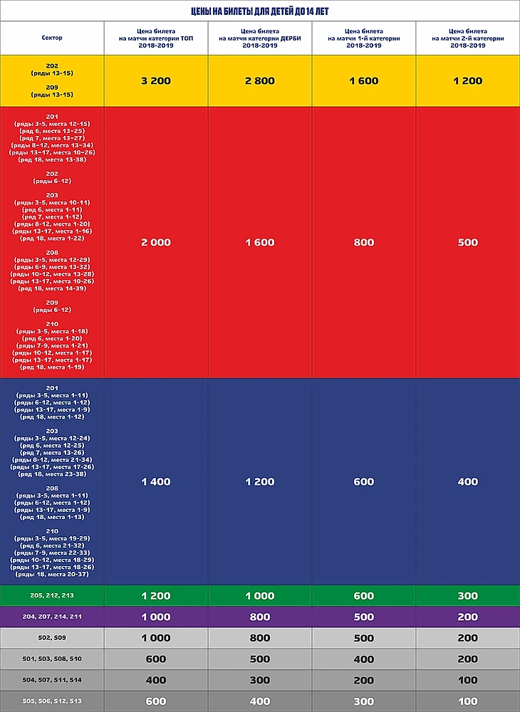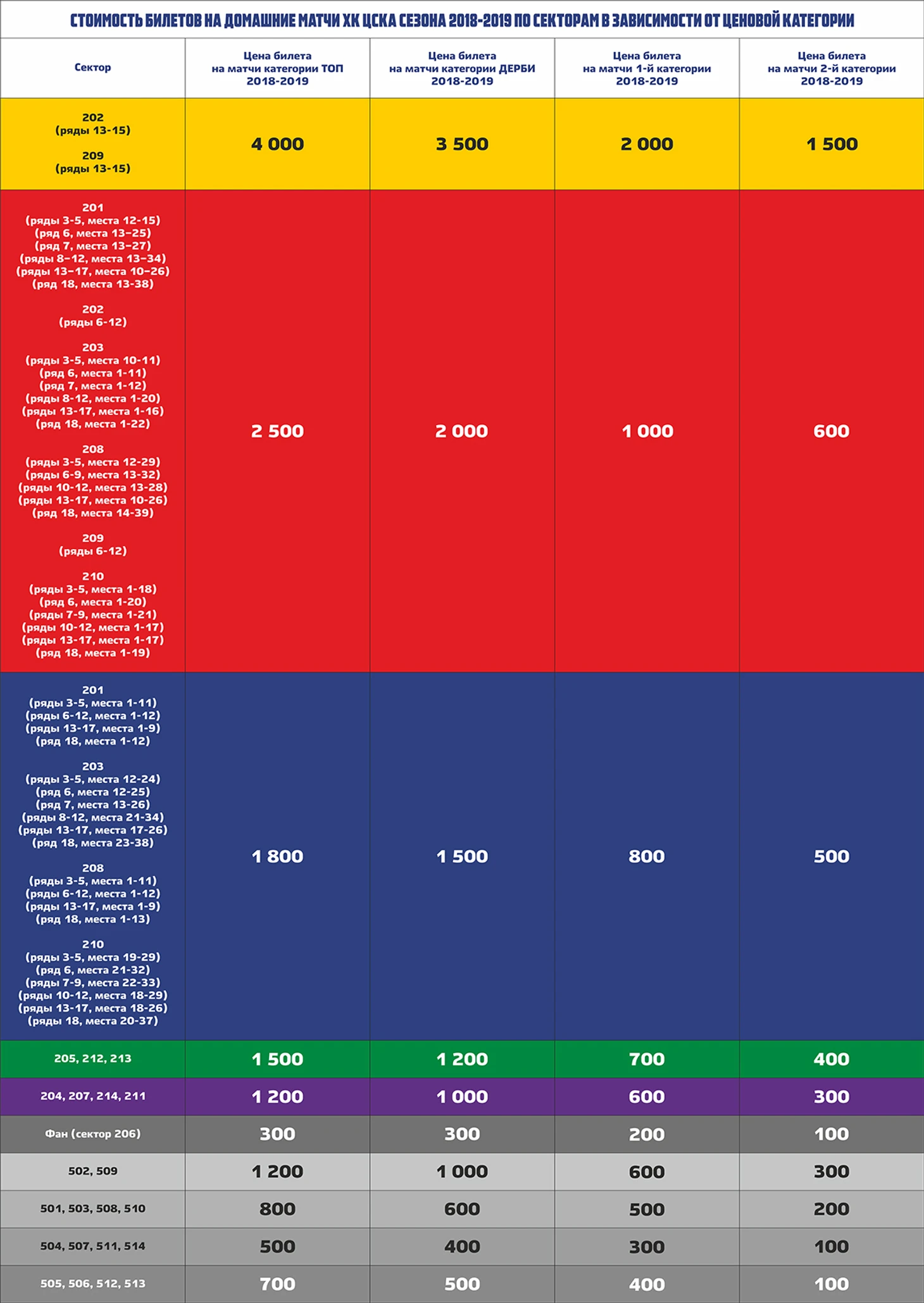 Стоимость билетов на домашние матчи ПХК ЦСКА в сезоне 2018/19 по секторам в зависимости от ценовой категории