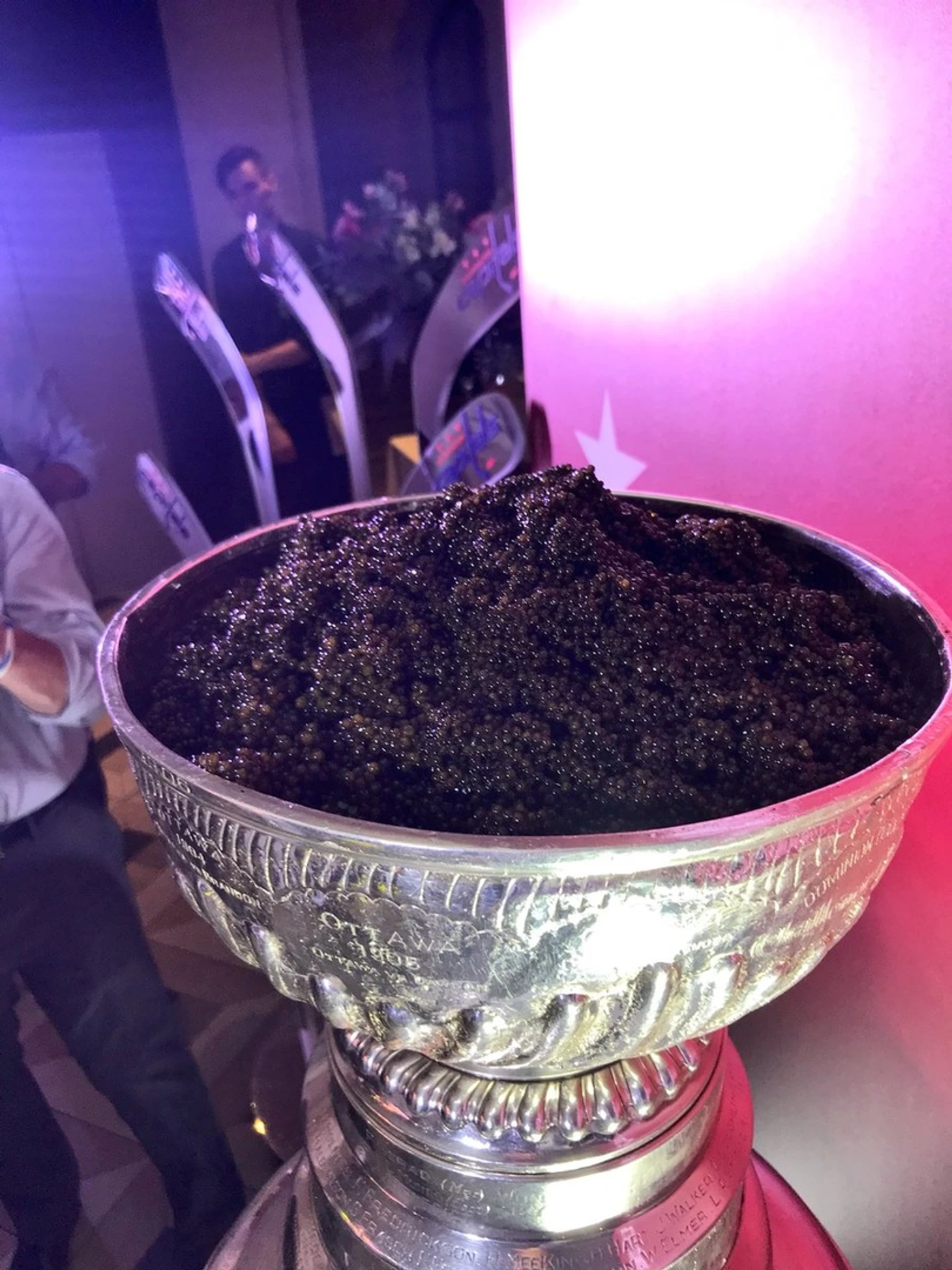 Кузнецов – не первый из хоккеистов, кто использует посудину по назначению. Многие игроки не только пьют шампанское из Кубка Стэнли, но и едят из него. В начале июля Александр Овечкин наполнил его черной икрой.