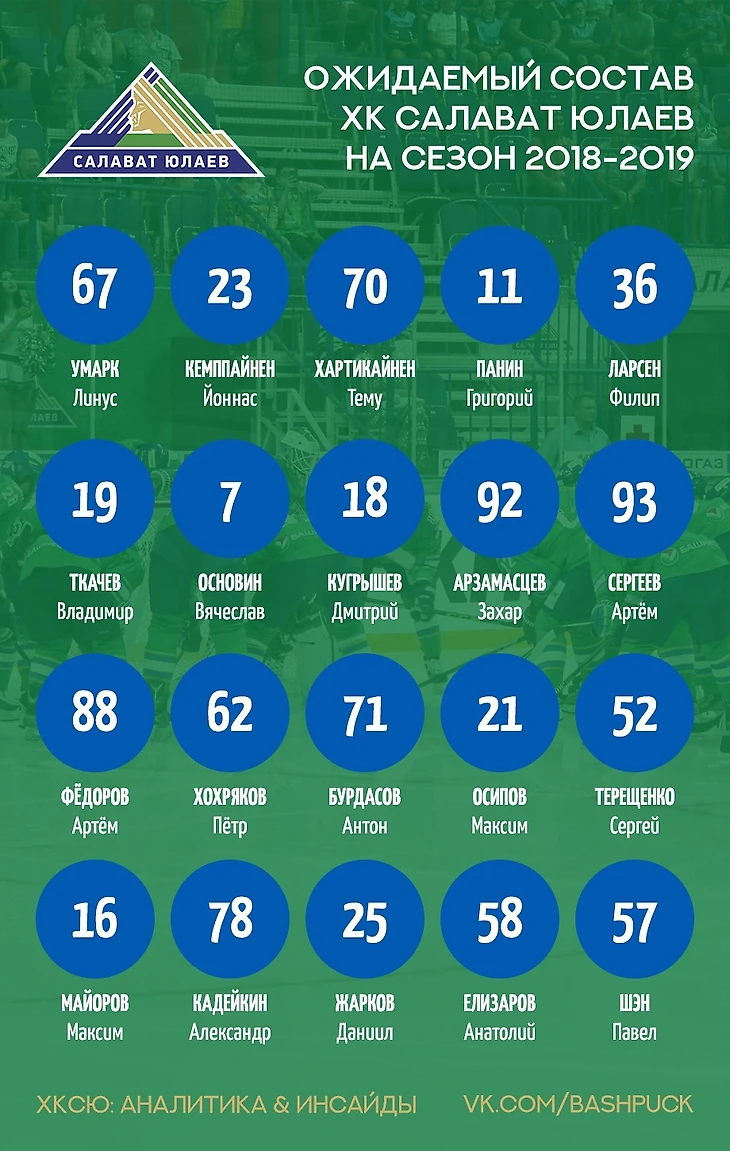 Первое легионерское звено в прошлом сезоне чаще всех в КХЛ отличались в равных составах (42 раза). Салават забил 101 шайбу, то есть 42% за Умарком, Кемппайненом и Хартикайненом. Классическая команда одного звена, утрачивающая шансы на победу каждый раз, когда оно проседает в результативности. Не скажешь, что это проблема отдельных личностей, но факт, что в случае спада в игре легионеров, Салават в большинстве матчей терял атакующий потенциал. За прошлый сезон не сформировалась ни одна тройка, способная из матча в матч бросать вызов первому звену, а на розыгрыш большинства выходили те же легионеры и Бурдасов. Цулыгин изначально решил переместить Умарка в другое звено, чтобы повысить уровень второй тройки. Но в матче с Трактором, в котором легионеры обоих команд отдыхали (кроме Ларсена и Стоа), блеснуло звено Ткачев - Основин - Кугрышев. Поучавствовав в 4 из 5 голов, они больше не разъединялись. Бурдасов отправился в третье звено, где изначально компанию составили Кадейкин и Федоров. Голов не было и тренеры решили поменять местами Кадейкина и центра четвёртого звена Хохрякова. Новое звено провело три сильных матча подряд, отметившись тремя шайбами. Фёдоров пока в роли догоняющих, но за счёт игры в большинстве определённо воспрянул после ужасного сезона.