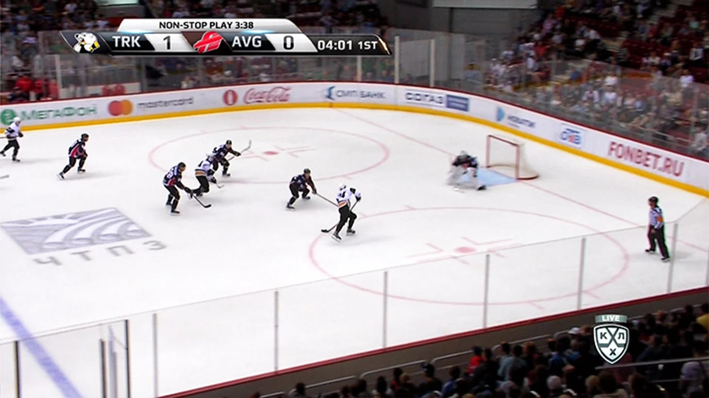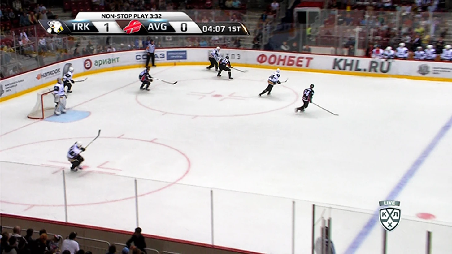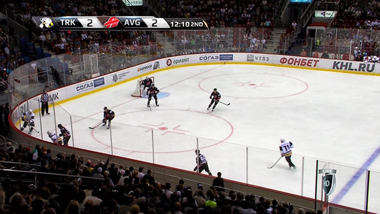 В итоге, Кравцов в одиночестве доехал до чужой зоны, получил шайбу и неотразимо бросил практически без сопротивления.