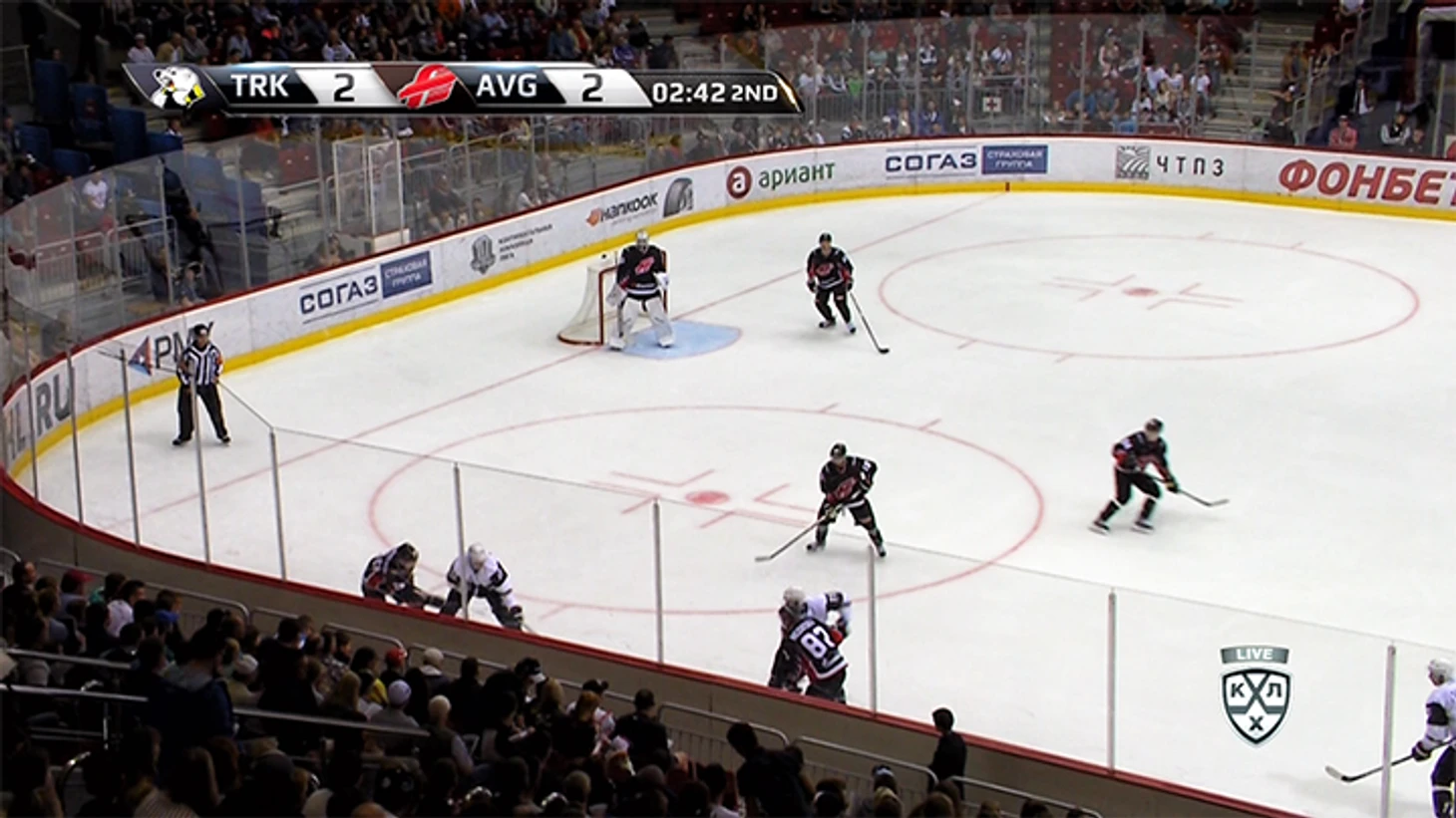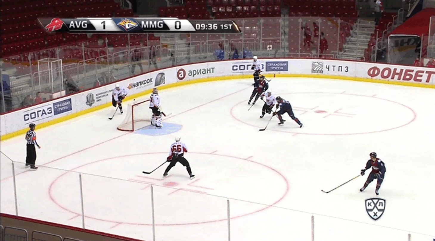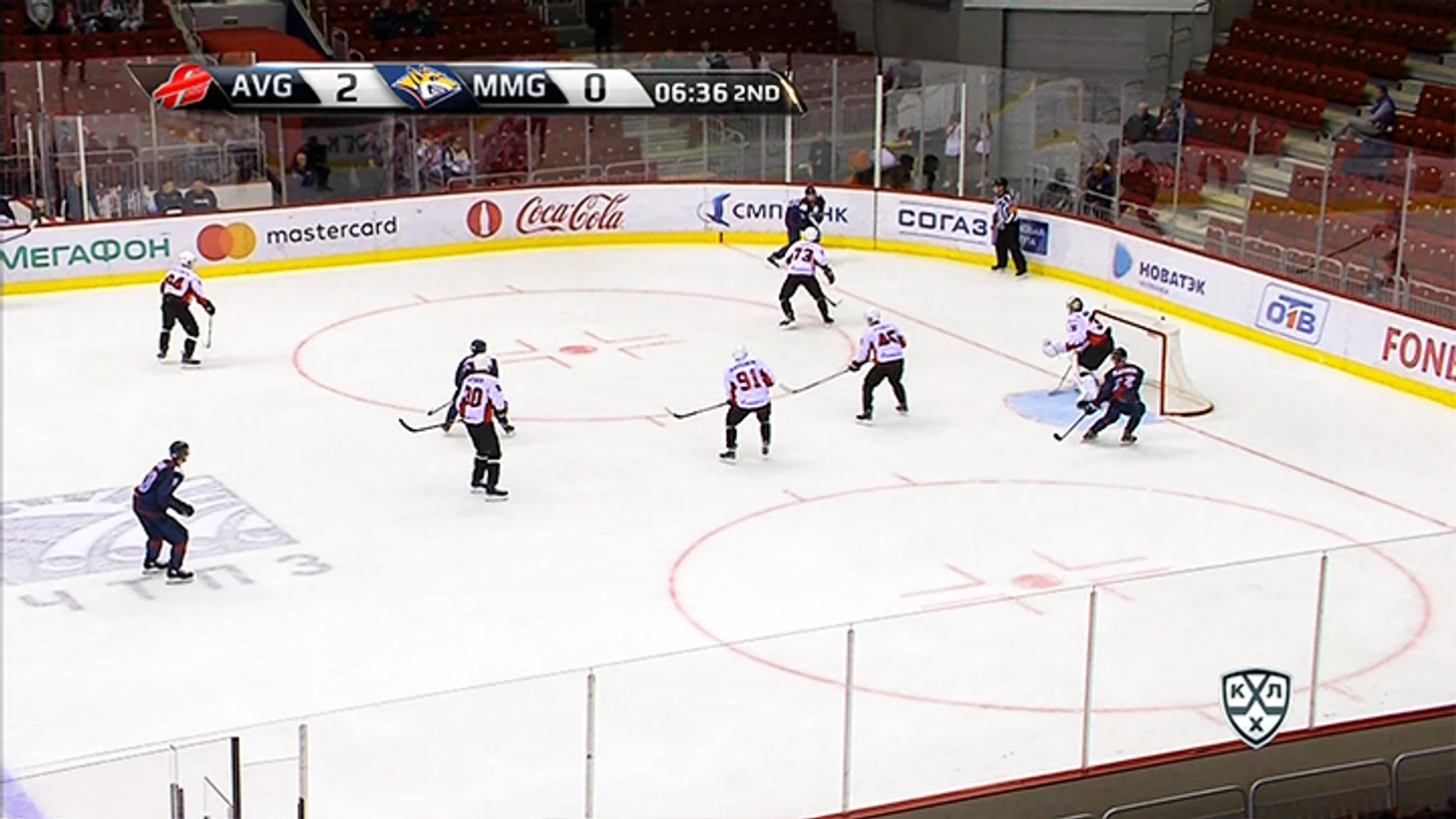 В итоге, Кравцов в одиночестве доехал до чужой зоны, получил шайбу и неотразимо бросил практически без сопротивления.