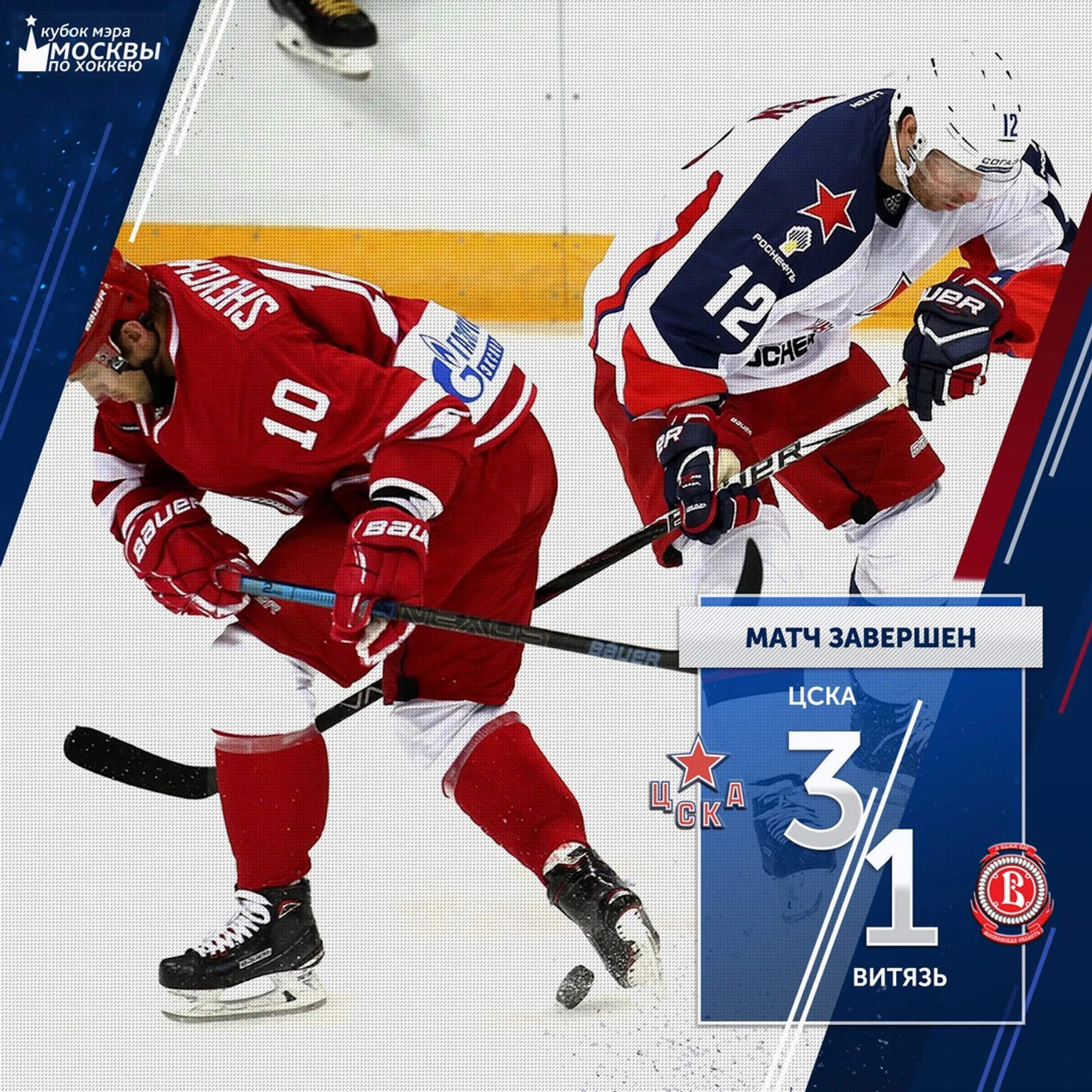 Подмосковный «Витязь» потерпел поражение от ЦСКА в рамках предсезонного Кубка мэра Москвы, встреча завершилась со счётом 3:1 в пользу подопечных Игоря Никитина.