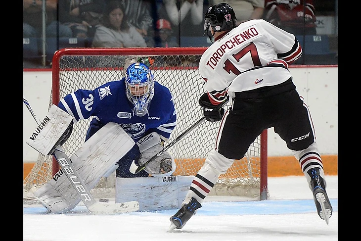 Вопросы: Некоторые российские СМИ говорят, что в тренировочном лагере еще один русский проспект “Сент-Луиса” Алексей Торопченко впечатлил даже больше, чем Клим Костин. Вы с этим согласны? Что мы можем ожидать от него в будущем? Сможет ли он выйти на уровень НХЛ и попасть в основу “Блюз”?