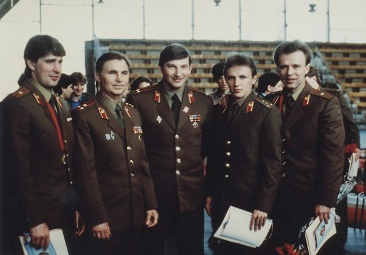 Третьяк уже подполковник – действующим игрокам такое звание не давали. К тому же, он закончил в 32 года после Сараево благодаря всем известным обстоятельствам в виде нежелания Тихонова пойти на компромисс.