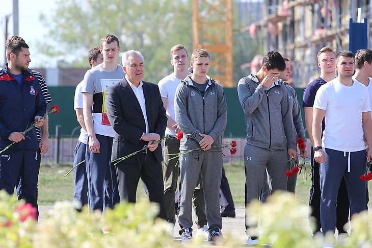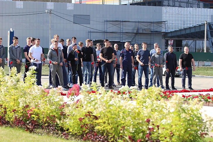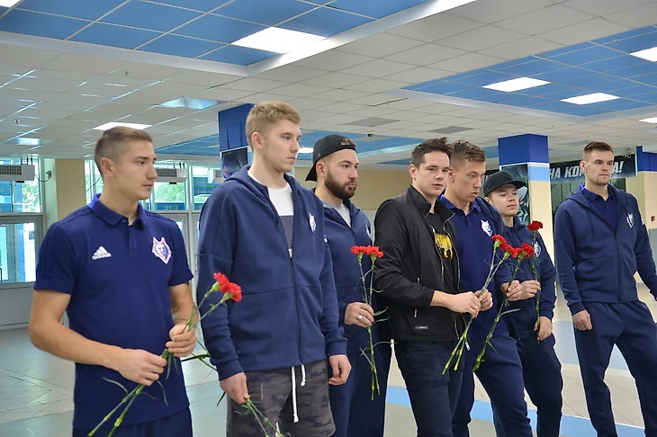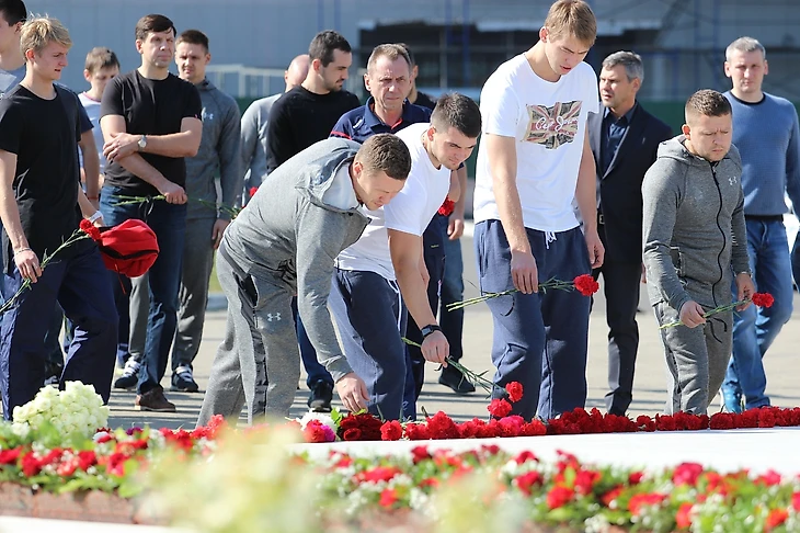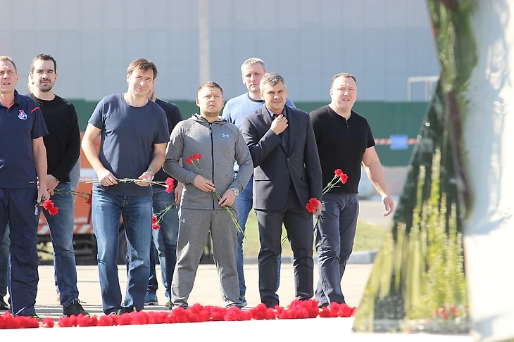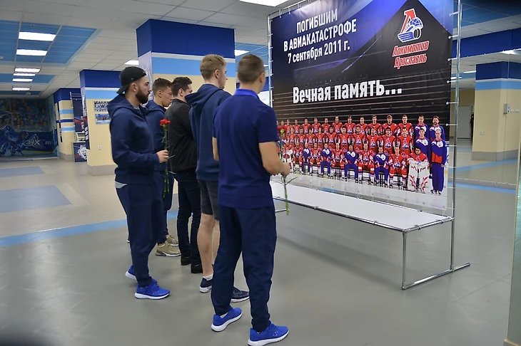Нынешний состав ярославской команды,тренеры и персонал возложили цветы к мемориалу «Хоккейное Братство» у «Арены-2000».