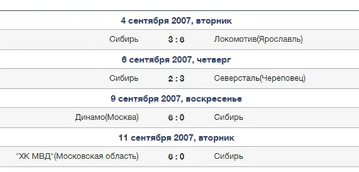 После поражения на Ходынке в новостных лентах прошло сообщение, что «Сибирь» так плохо сезон КХЛ не начинала. Суперлигу не вспомнили... А ведь сезон 2007/08 «Сибирь» закончила предпоследней — девятнадцатой из двадцати.