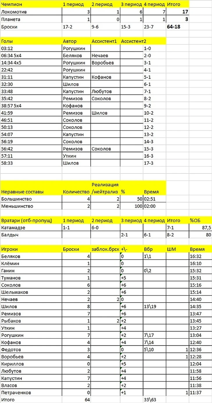 Ладно, будем считать, что мы тоже показали далеко не всё. Да так и есть. В общем-то по счёту претензий же нет. Пусть так будет во всех оставшихся играх! Так что всё равно все молодцы, с первой победой!