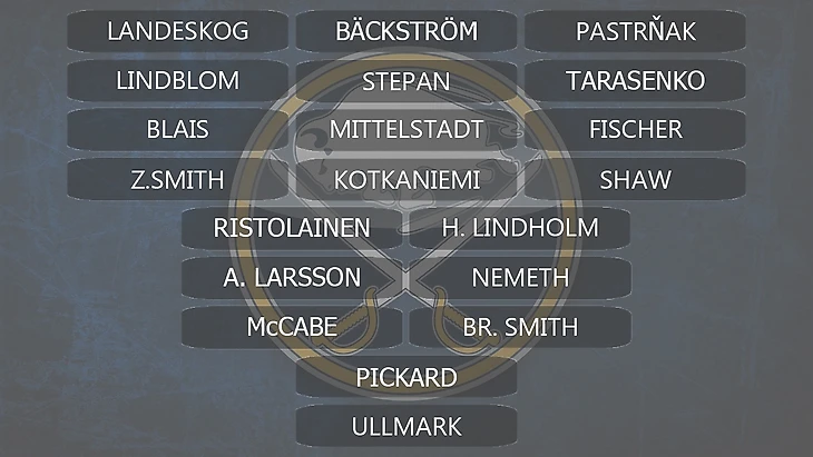 Баффало имеет могучий действующий костяк - 4 форварда 6/6+ фпг, Ристолайнен, Хампус, который скорее всего затащат его в ПО сходу. Помимо этого, имеется ряд молодых игроков с хорошими задатками. Некоторые из них уже имеют опыт в НХЛ, и скорее всего они сильно прибавят в будущем, а так же имеется определенная глубина ролевичков. Главное беспокойство вызывает вратарский вопрос - в команде нет ни одного явного стартера.