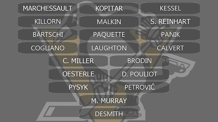 Кип: Кросби, Малкин, Мюррей, Кессел, Астон-Риз, Спронг.