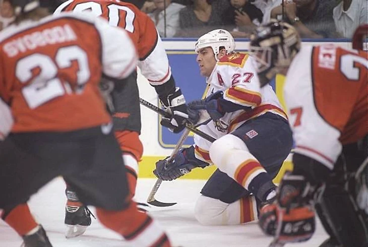Легендарный тафгай Флориды- Пол Лос во всей красе. Всю свою НХЛовскую карьеру провел в солнечной Флориде. Провел за Пантерз 9 сезонов, сыграв в 530 матчах и набрав в них 1702 штрафных минуты.