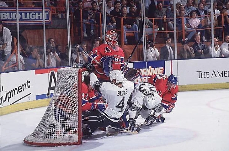 В финале противостояли Монреалю Лос-Анджелес Кингз, во главе с Великим и ужасным Уэйном Гретцки. Судя по фото, уже можно представить, какой напряженной и жесткой была финальная серия, 3 матча из 5-ти доходили до овертайма.