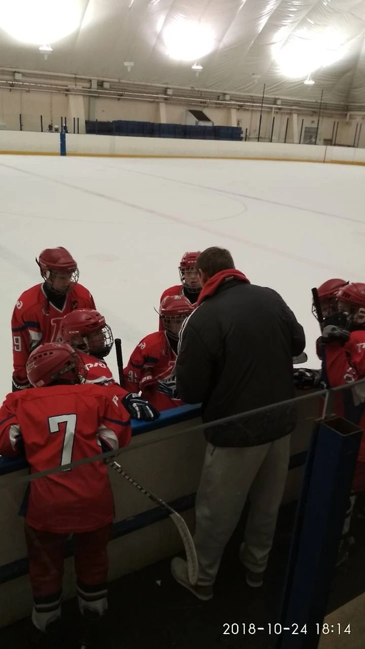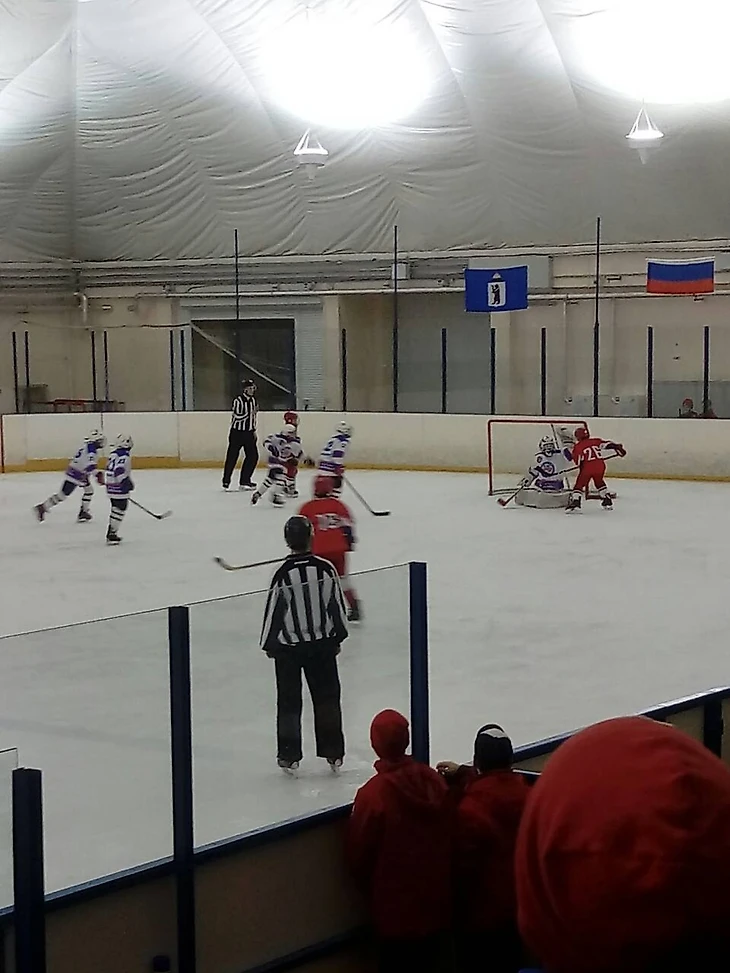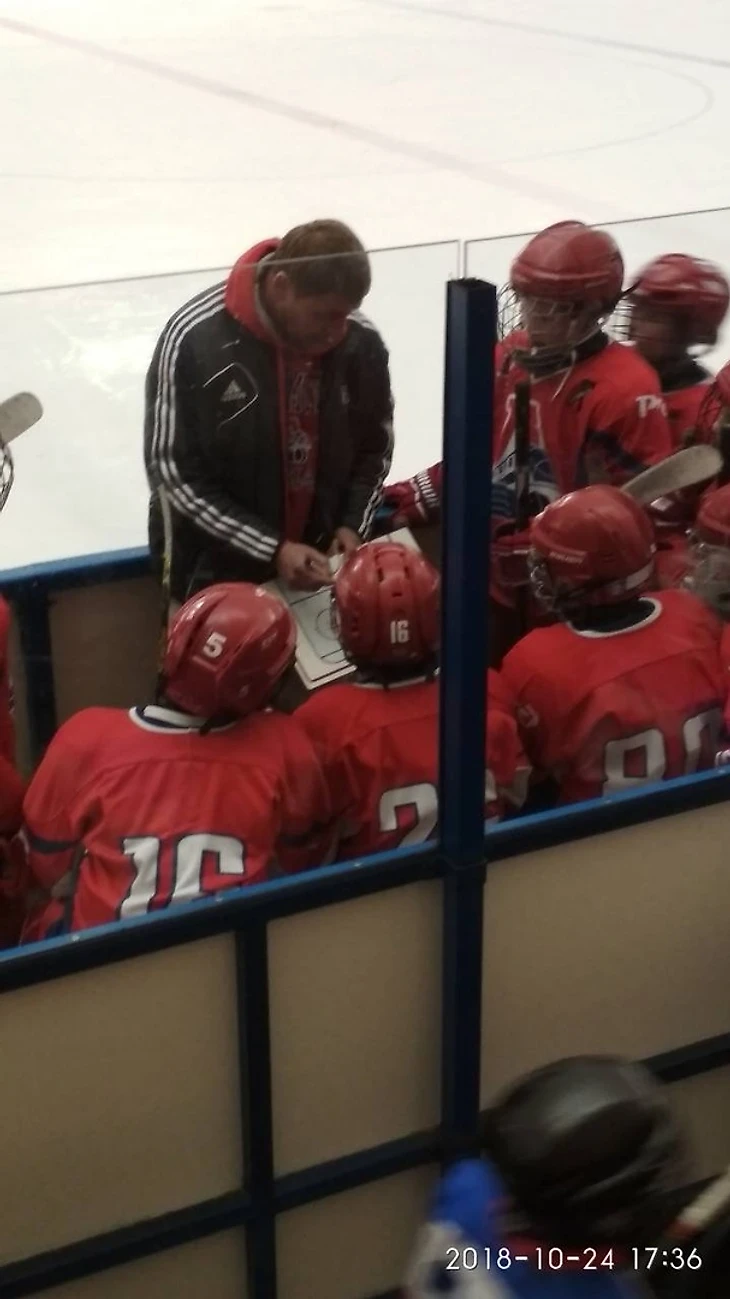Началось всё с неприятности и лишней нервотрёпки у нашего кипера – на разминке шайба попала ему в шлем. Крепления маски вылетели, и она превратилась в калитку, держась только на одной стороне. Хорошо, что оперативные поиски частично увенчались успехом, и один из двух болтов Миша нашёл. В итоге отстоял гимн без шлема, но к началу встречи дрожащими руками родителей крепёж был возвращён на место, и важный элемент экипировки вернулся владельцу практически без задержки первого вбрасывания.