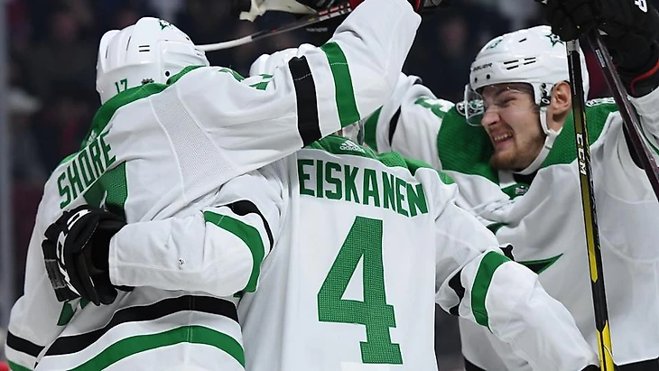 "Монреаль Канадиенс"-"Даллас Старз" 1:4.Девин Шор набрал 3 очка (1+2),Иса Линделл набрал 2 очка (1+1),Алексадр Радулов забросил одну шайбу,Бен Бишоп отразил 34 броска.