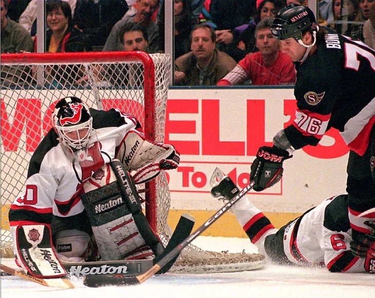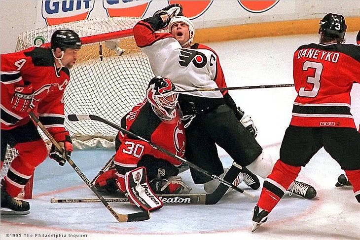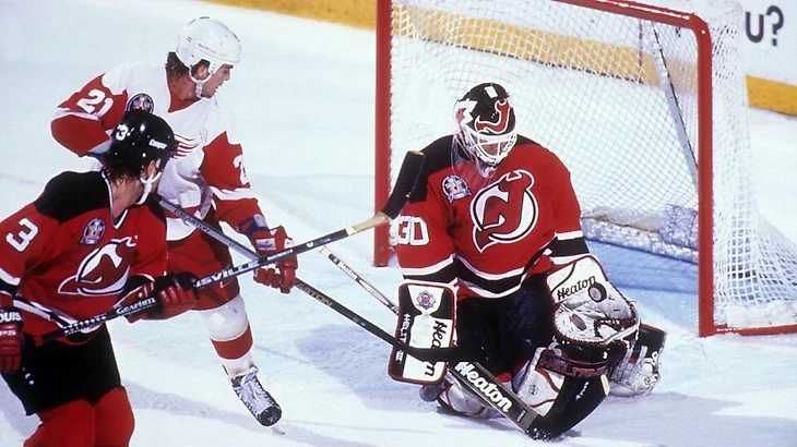 Легендарный вратарь Девилз-Мартин Бродо. В 95-м Мартин проводил, по сути, второй полноценный сезон в Лиге.