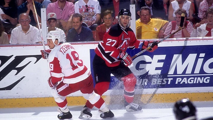 Великий, жесткий, зубодробительный, капитан Девилз-Скотт Стивенс. Если бы Стивенс играл в 2018 в НХЛ, то наверняка бы большую часть карьеры он провёл дома, так как был постоянно дисквалифицирован Лигой. За свою карьеру, Стивенс выбивал дух многим звёздам игры, да что уж говорить, Стивенс практически завершил карьеру Эрику Линдросу и Полу Карие. Стивенс был бессменным капитаном Девилз с 1992 по 2004 год. Кстати, как Вы относитесь к Стивенсу? Обсудим в комментариях?
