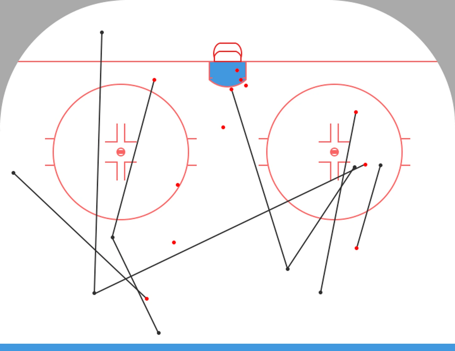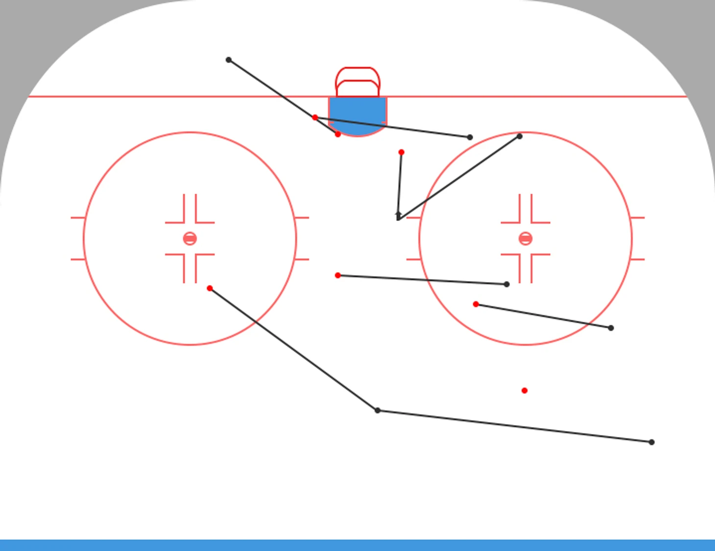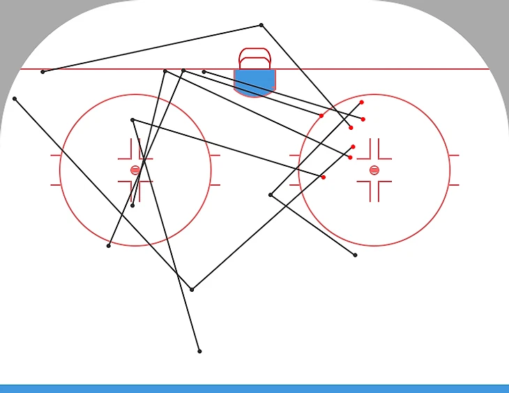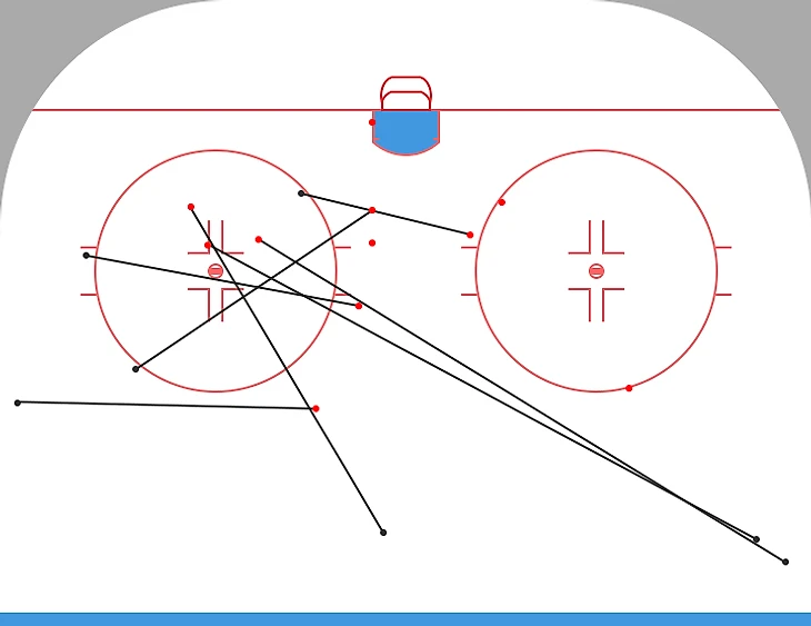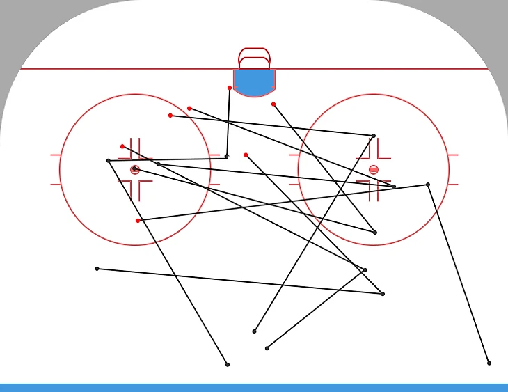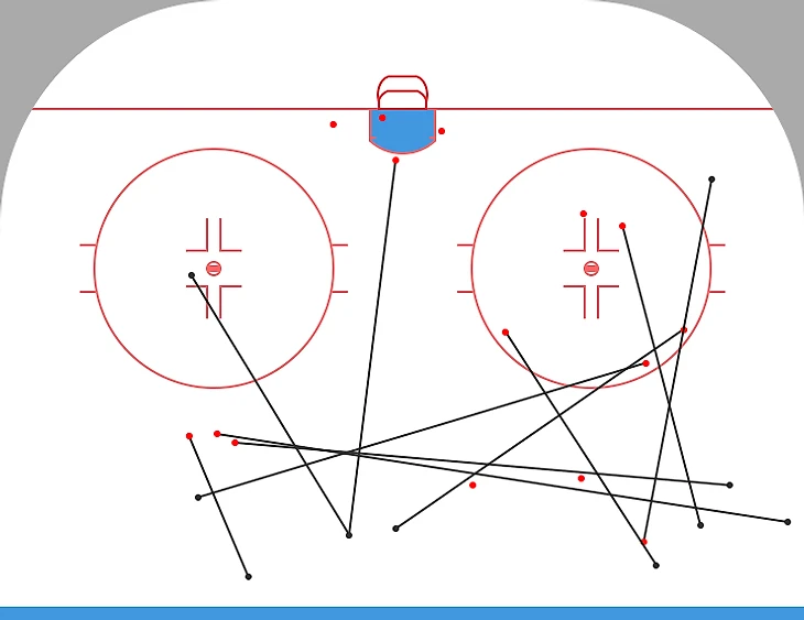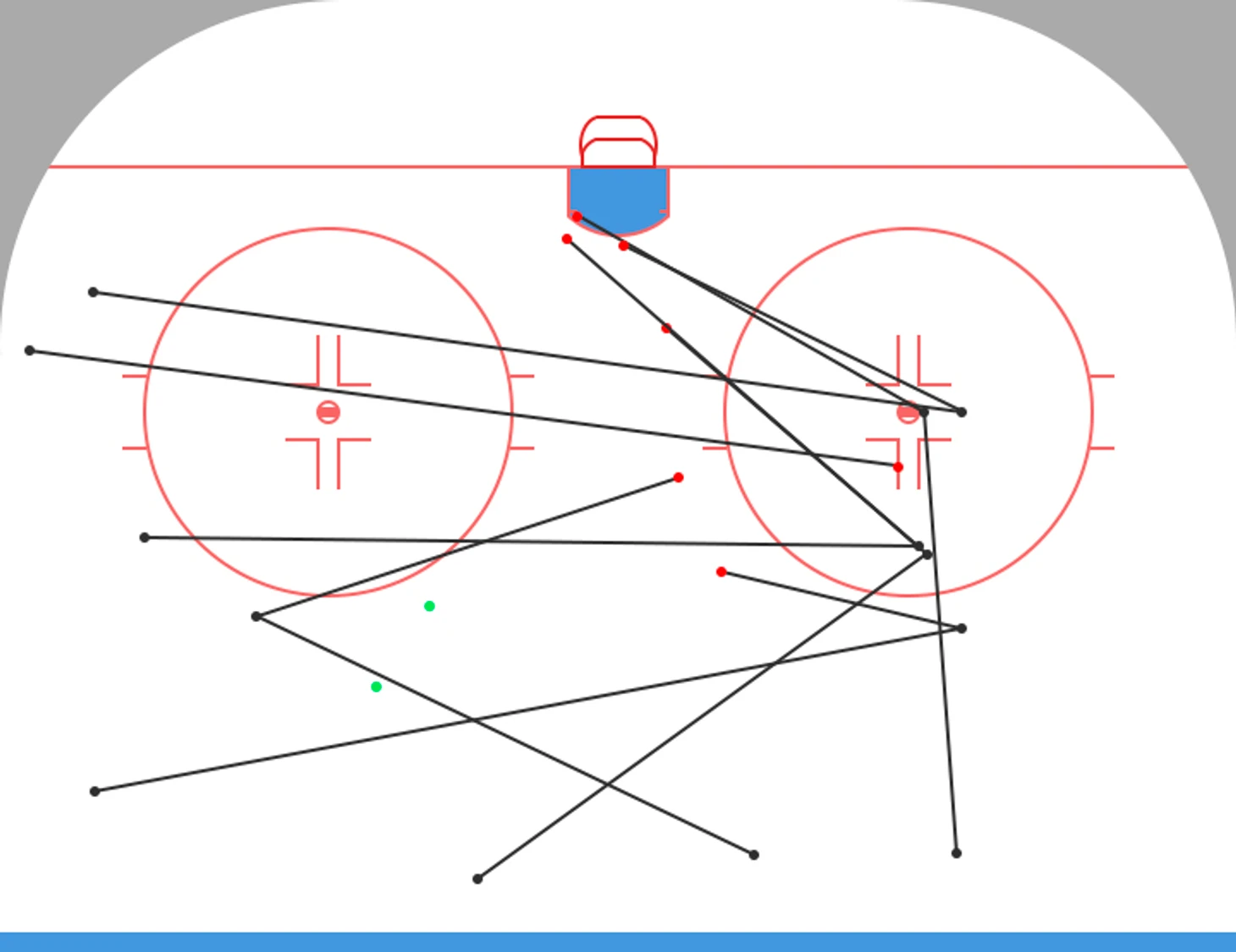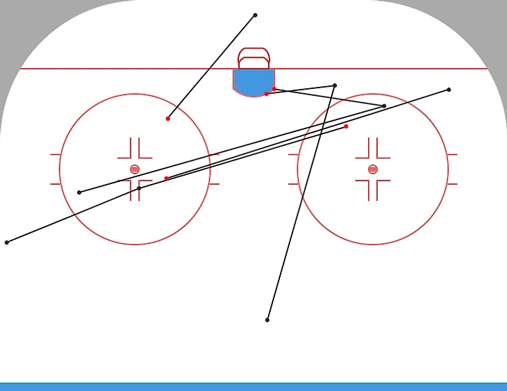 Разберем заброшенные шайбы подробнее. Они отмечены красным кругом, черным – ассистенты и соответственно проведены линии передач.