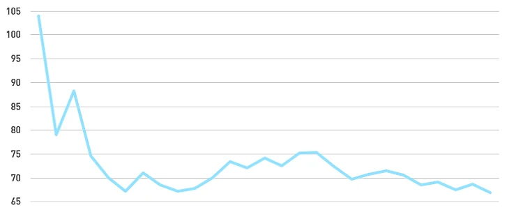 Если смотреть на среднее время реализации по сезону, то оно стабильно уменьшается и уже составляет меньше минуты, так как «Авто» и поздними шайбами в большинстве не отличается, предпочитая не доводить дело до последних секунд.