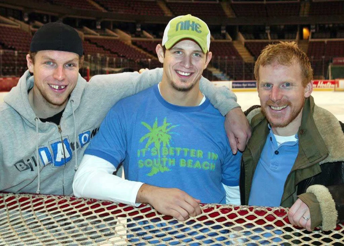 Дэни Хитли, так же как и Спецца был выбран под вторым номером драфта, но на год раньше Джейсона. На фото Хитли, выбранный Атлантой Трэшерс, вместе с Риком ДиПьетро и Марианом Габориком.