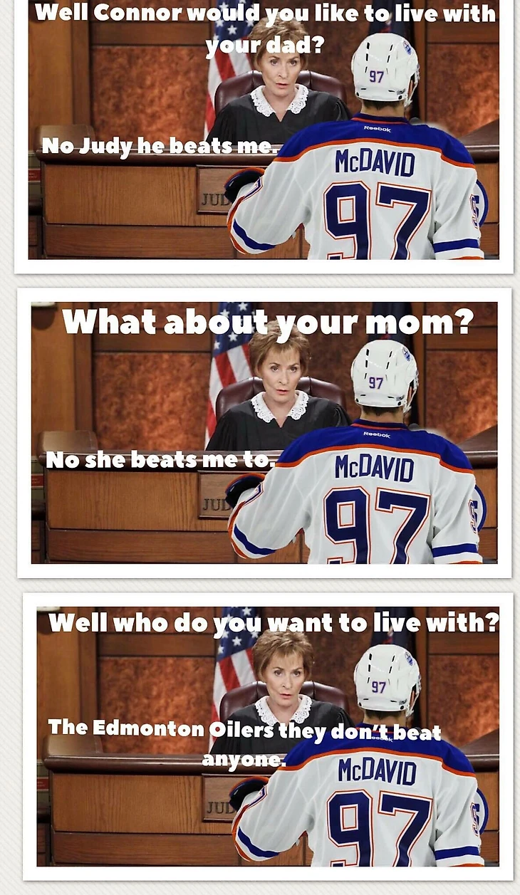 В КС17 Эдмонтон эпически слил ключевой пятый матч серии с Анахаймом. ЭО вёл в счёте 3-0 за 3 с половиной минуты до конца, но пропустил три раза при снятом вратаре соперника. Причём при двух последних шайбах на льду находился КМД. Сомневаюсь, что в истории КС был другой подобный казус. Но главное, что урок не пошёл впрок! В РЧ во встрече тех же соперников ситуация повторилась точь в точь. Анахайм меняет вратаря на полевого игрока и забивает шайбу, в составе Ойлерс в этот момент, как нетрудно догадаться, опять пытался шакальнуть КМД. Вся ветка во главе с Гуллитом угорала над Ойлерс.