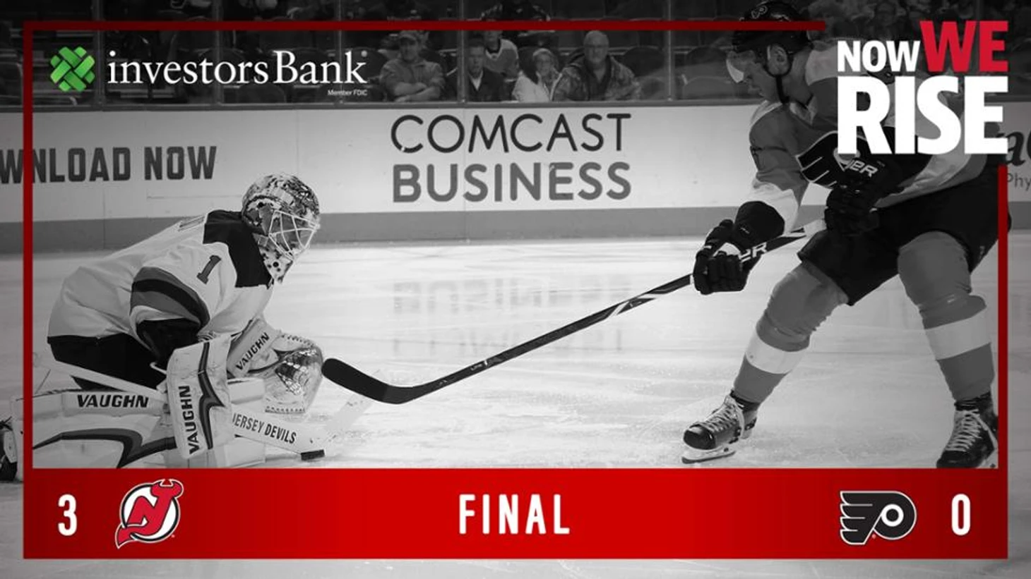 "Филадельфия Флайерс"-"Нью-Джерси Дэвилз" 0:3.Блэк Коулмэн набрал 3 очка (1+2),Кайл Палмьери набрал 2 очка (1+1),Кит Кинкэйд отразил 29 бросков и сыграл 3 сухой матч в сезоне.Уэйн Симмондс и Дэймон Северсон в конце матча получили по 10 минут штрафа."Дьяволы" выиграли 2 матч подряд.