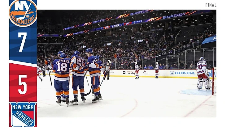 "Нью-Йорк Айлендерс"-"Нью-Йорк Рейнджерс" 7:5.Энтони Бовилье набрал 4 очка (3+1),Вальтери Фильппула отдал 3 результативные передачи,Брок Нельсон и Лео Комаров набрали по 2 очка (1+1),Ник Лэдди отдал 2 результативные передачи,Томас Грайсс отразил 36 бросков.У гостей Крис Крайдер забросил 2 шайбы,Нил Пионк отдал 2 результативные передачи,Владислав Наместников отдал результативную передачу.