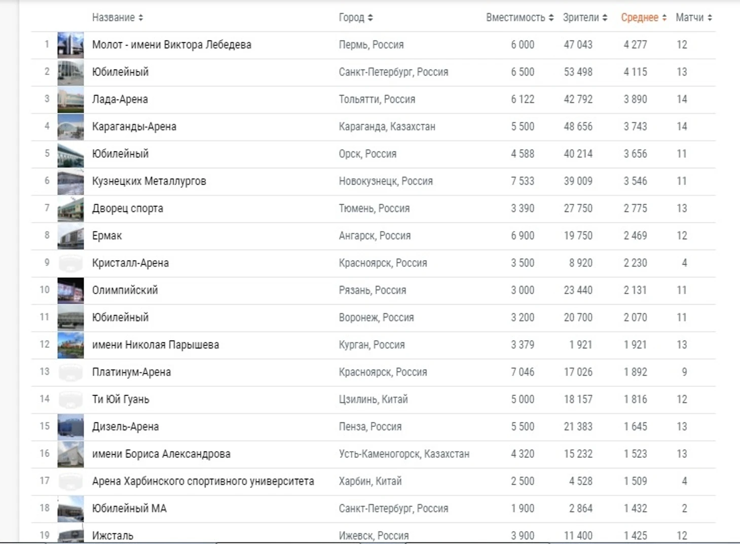 Первое место занимает Молот-Прикамье, матчи которого проходят в УДС им. Лебедева.