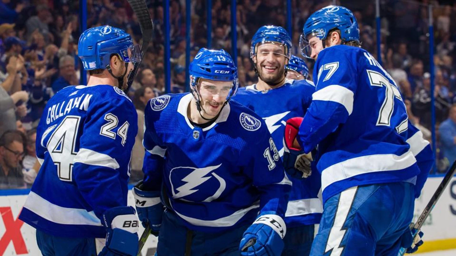 "Тампа-Бэй Лайтнинг"-"Нью-Джерси Дэвилз" 5:2.Брэйден Пойнт набрал 3 очка (2+1),Никита Кучеров отдал 2 результативные передачи,Луи Доминге отразил 33 броска."Молнии" выиграли 3 матч подряд.