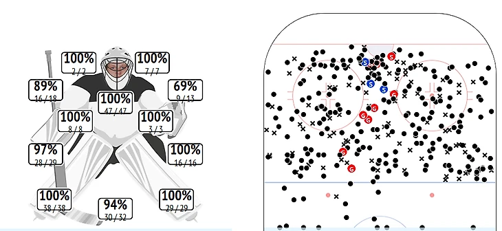 У Ларса Юханссона меньше 1 пропущенной шайбы за матч и 97% отраженных бросков, у Ильи Сорокина, который играет в два раза больше, статистика чуть хуже – 94% сэйвов и 1,1 шайба за 60 минут. И это не только случай системы.