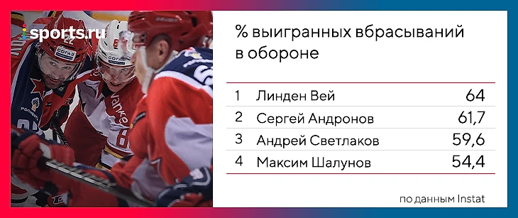 Если по общему числу выигранных единоборств армейских клуба идут вровень, то по игре на точке конкретно в зоне обороны москвичи улетели от всех преследователей на какое-то чудовищное расстояние. Помогают этому крутые оборонительные центры: Сергей Андронов пусть и не лучший по проценту на точке, но встает на нее чаще Линдена Вея, у которого абсолютно читерская статистика. Все еще непонятно, какое помутнение рассудка случилось в Астане, когда они выгнали канадца в прошлом году.