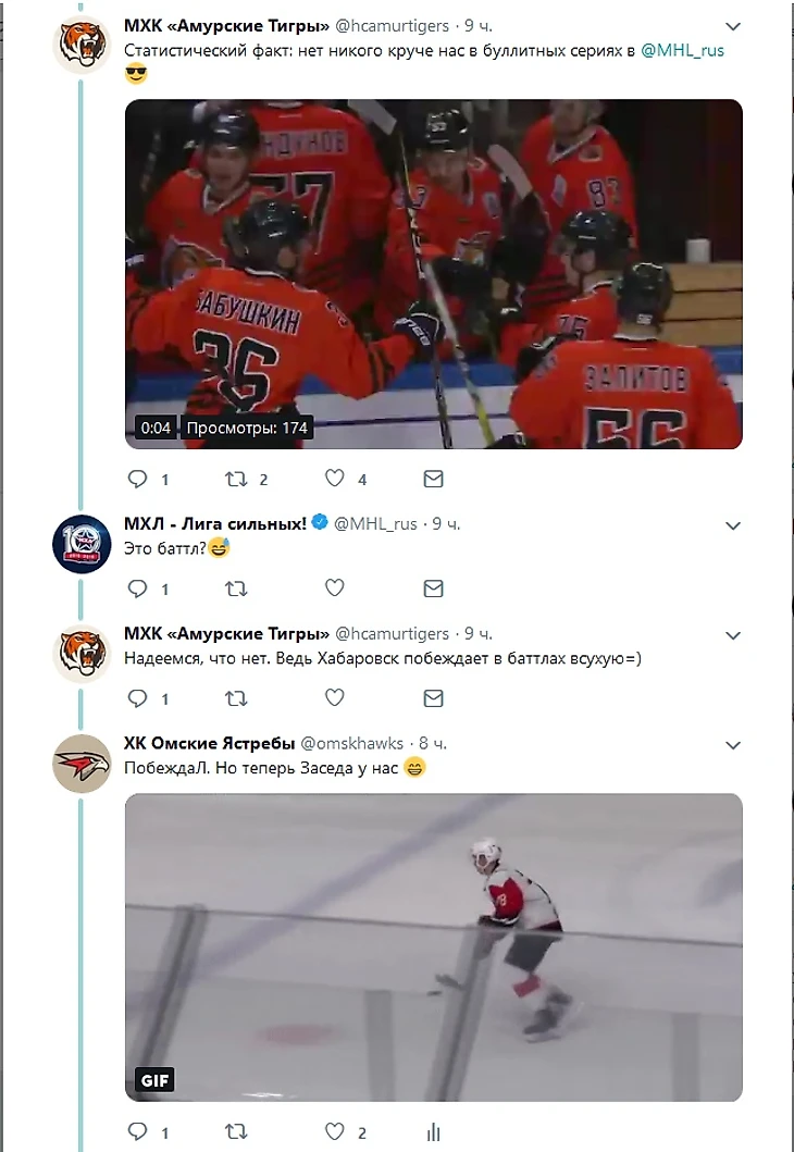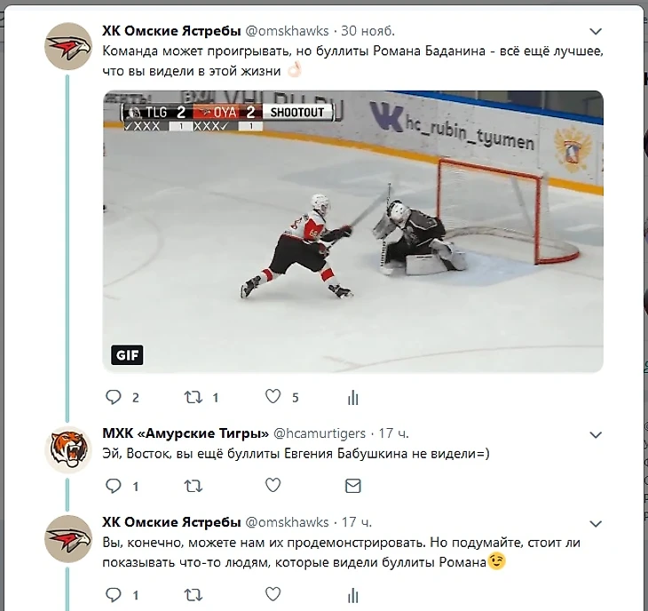 Только посмотрите, какой баттл случился в твиттере между "Омскими Ястребами" и "Амурскими Тиграми"!