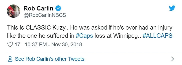 Классический Кузя. У него спросили, получал ли он ранее подобные повреждения, как то, которое случилось в проигранной «Виннипегу» встрече