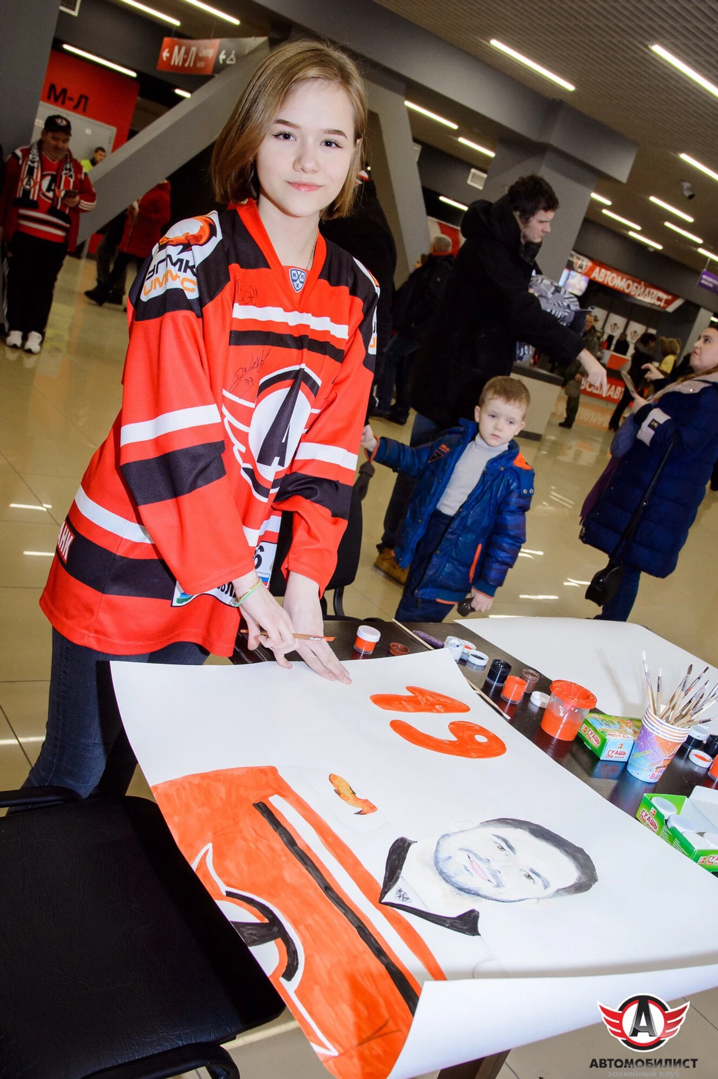Татьяна Смирнова поддерживает "Автомобилист" не первый год. По ее словам хоккей и рисование две страсти, которые она смогла соединить вместе. Вчера, на матче с "Амуром" мы стали свидетелями произведений, которые Татьяна с удовольствием продемонстрировала остальным фанатам.