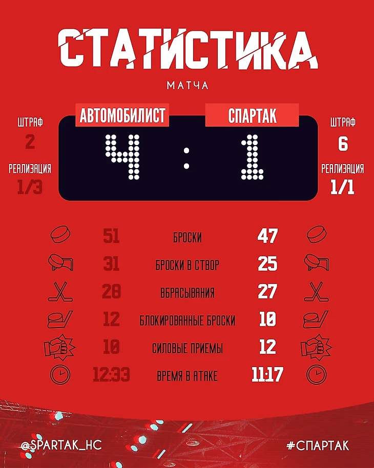 А Стефан Да Коста забивал пятую шайбу уже в пустые ворота. Таким образом- 5:3 в пользу "Автомобилиста" и отличное настроение команды и болельщиков на игру против "Спартака".