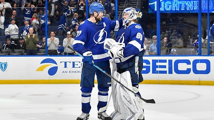 "Тампа-Бэй Лайтнинг"-"Торонто Мэйпл Лифс" 4:1.Никита Кучеров и Энтони Чирелли набрали по 2 очка (1+1),Джей-Ти Миллер отдал 2 результативные передачи,Андрей Василевский отразил 48 бросков."Молнии" выиграли 8 матч подряд.
