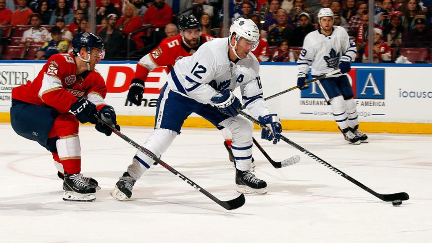 "Флорида Пантерз"-"Торонто Мэйпл Лифс" 4:3 (ОТ).Александр Барков в овертайме принёс победу хозяевам.Александр Барков забросил 3 шайбы,Джонатан Юбердо набрал 2 очка (1+1),Майк Хоффман отдал 2 результативные передачи,Евгений Дадонов отдал результативную передачу,Роберто Люонго отразил 29 бросков.У гостей Митчелл Марнер забросил 2 шайбы,Морган Райли и Джек Гардинер отдали по 2 результативные передачи,Никита Зайцев отдал результативную передачу.Маккензи Уигар за грубость получил 10 минут штрафа."Пантеры" прервали серию из 4 поражений подряд.