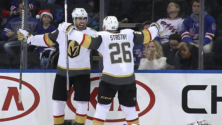 "Нью-Йорк Рейнджерс"-"Вегас Голден Найтс" 3:4 (ОТ).Алекс Тач в овертайме принёс победу гостям.Пол Штясны и Алекс Тач набрали по 2 очка (1+1),Колин Миллер отдал 2 результативные передачи,Марк-Андре Флери отразил 27 бросков.У хозяев Кевин Хэйз отдал 3 результативные передачи,Павел Бучневич отдал результативную передачу."Рейнджеры" проиграли 3 игру подряд.