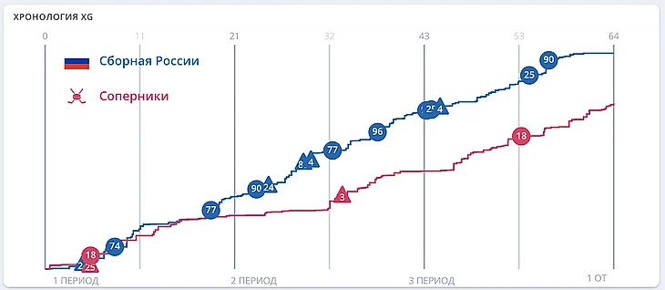Конечно, игроки и тренеры не скажут, что было легко, но сборная России смяла соперников на домашнем этапе Евротура. Это подтверждает хронология xG в матчах со всеми соперниками. У наших хоккеистов были небольшие проблемы только в начале матча со шведами, от которых, как показалось, сборная не ожидала такого темпа.