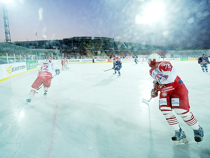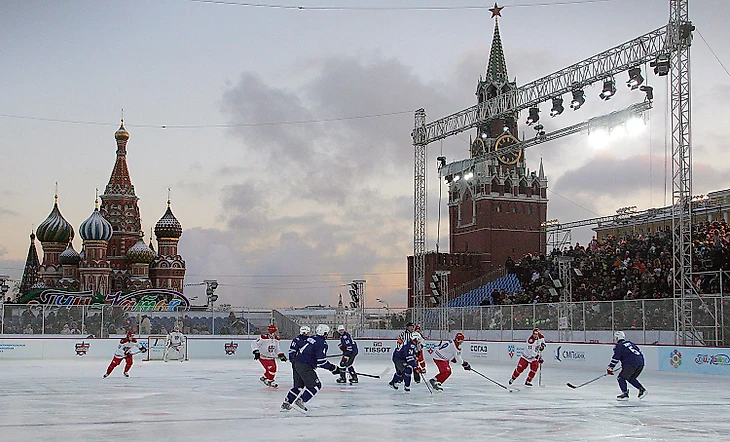 Возрождением былых традиций хоккея на открытом воздухе в России можно назвать самый первый матч звезд КХЛ в 2009 году. Тогда в Москве на Красной площади построили временный каток. Пусть скромные трибуны на 2 тысячи 400 человек вас не смущают — на тот момент лига не гналась за цифрами посещаемости, а просто хотела передать дух былой эпохи, привезти лучших хоккеистов КХЛ на Красную площадь, чтобы те показали красивую игру.