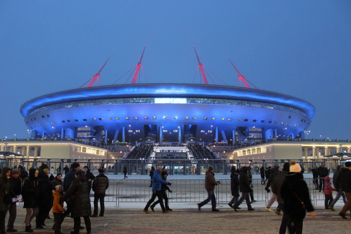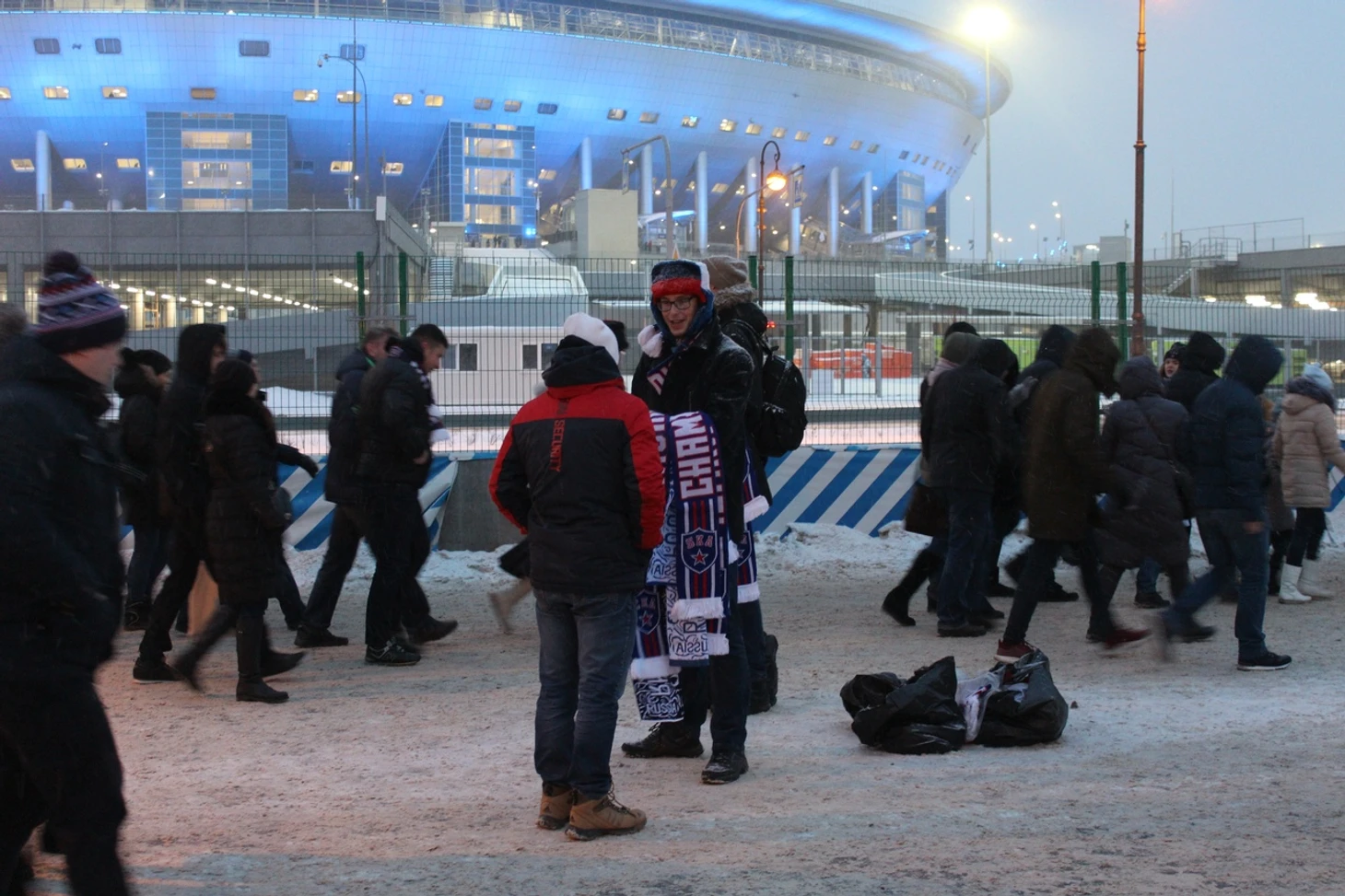 Народ продолжал прибывать на игру даже после стартового вбрасывания. Крестовский остров, на котором расположен стадион, является счастливым обладателем сразу двух станций метро на противоположных своих окраинах, причём эти станции – разных веток. Благодаря этому болельщики равномерно распределяются вокруг стадиона и не скапливаются у одного входа.