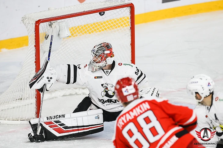 В концовке "Трактор" "снял" вратаря, плотно закрыв "Авто" в их зоне. Белые медведи были очень близки к тому, чтобы спасти матч, но Коварж все-таки сумел спасти ворота.