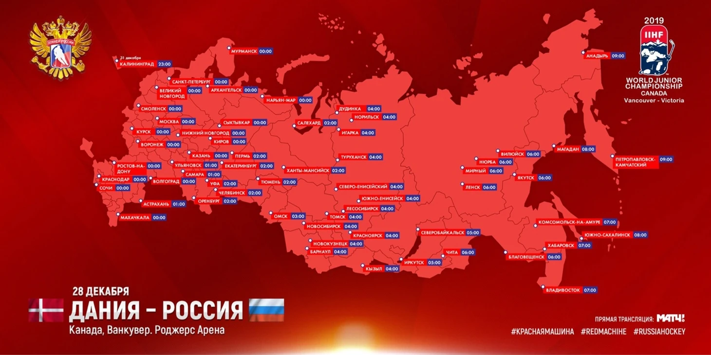 21.38 Матч начинается в 0.00 – но это по московскому времени. Сборная России побеспокоилась за вас – и сразу пересчитала начало матча на часовые пояса.