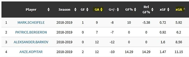 При этом, если брать за точку отсчета такой показатель, как xGA – Expected Goals Against – или «ожидаемые» голы на основании статистических показателей в данной игровой ситуации (вне зависимости от игры вратарей), то Марк в числе лидеров. Его показатель xGA в два раза выше, чем у Копитара – хотя тому не особо в этом сезоне помогает команда, и в полтора раза лучше, чем у Баркова.