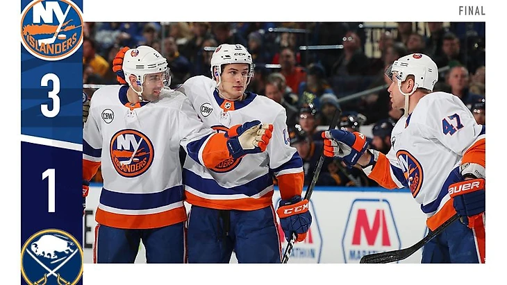 "Буффало Сэйбрз"-"Нью-Йорк Айлендерс" 1:3.Ник Лэдди с Броком Нельсоном и Райаном Пулоком принесли победу гостям,Робин Ленер отразил 39 бросков."Островитяне" выиграли 4 матч подряд.